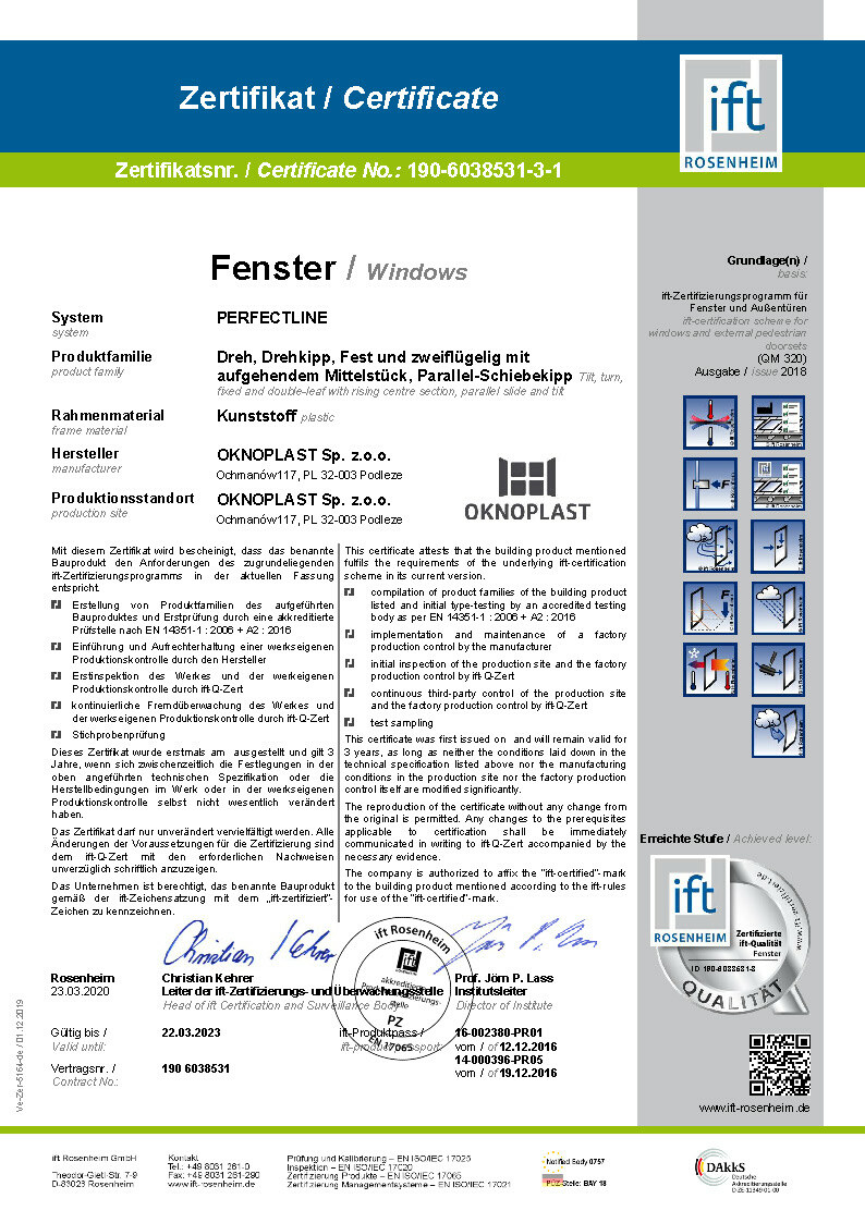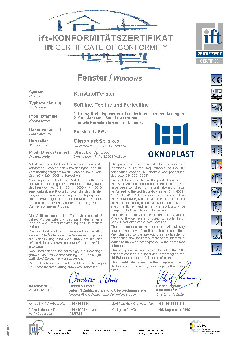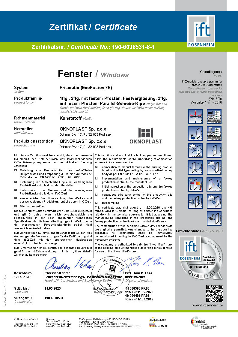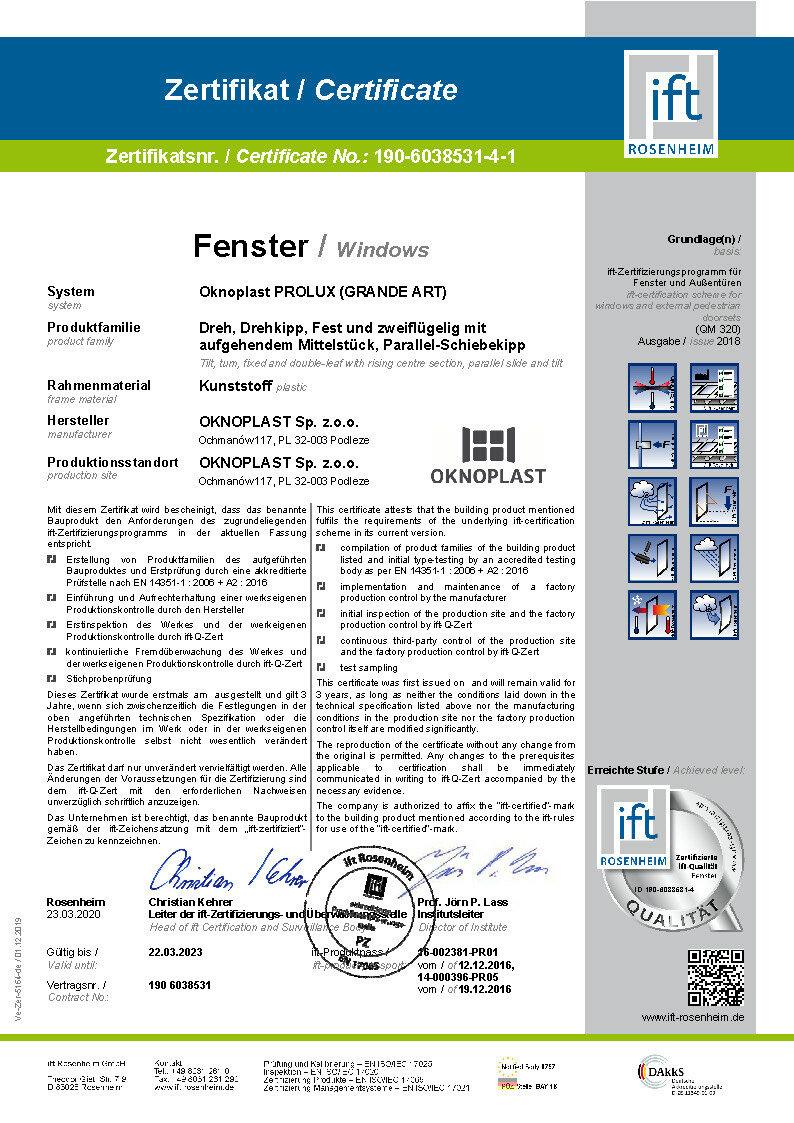 Certifikat IFT Prolux Aluminium