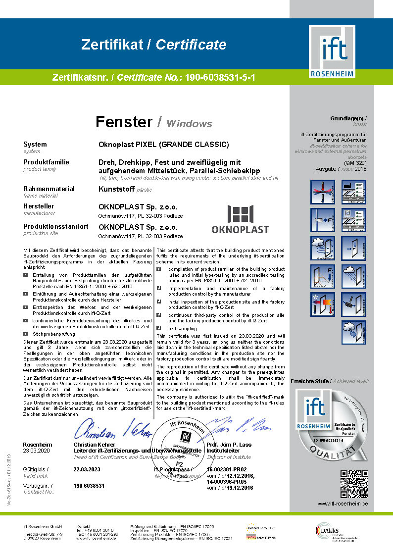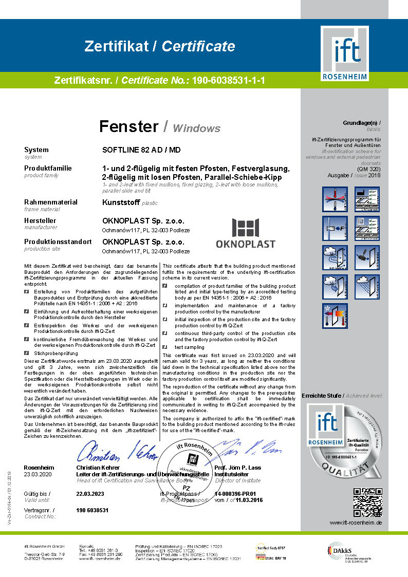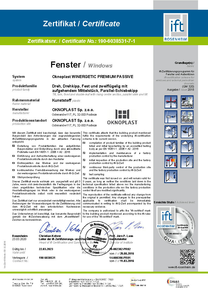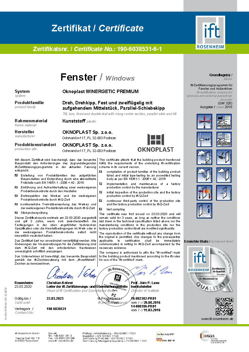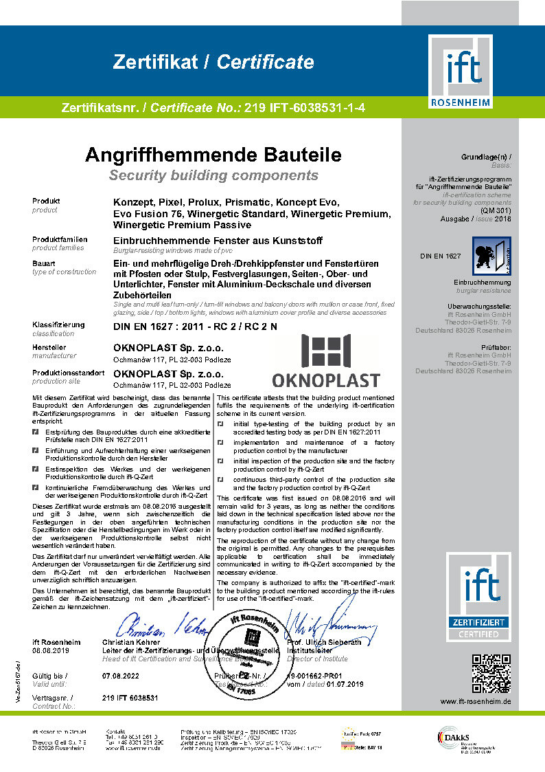 Certifikat IFT Prolux Aluminium